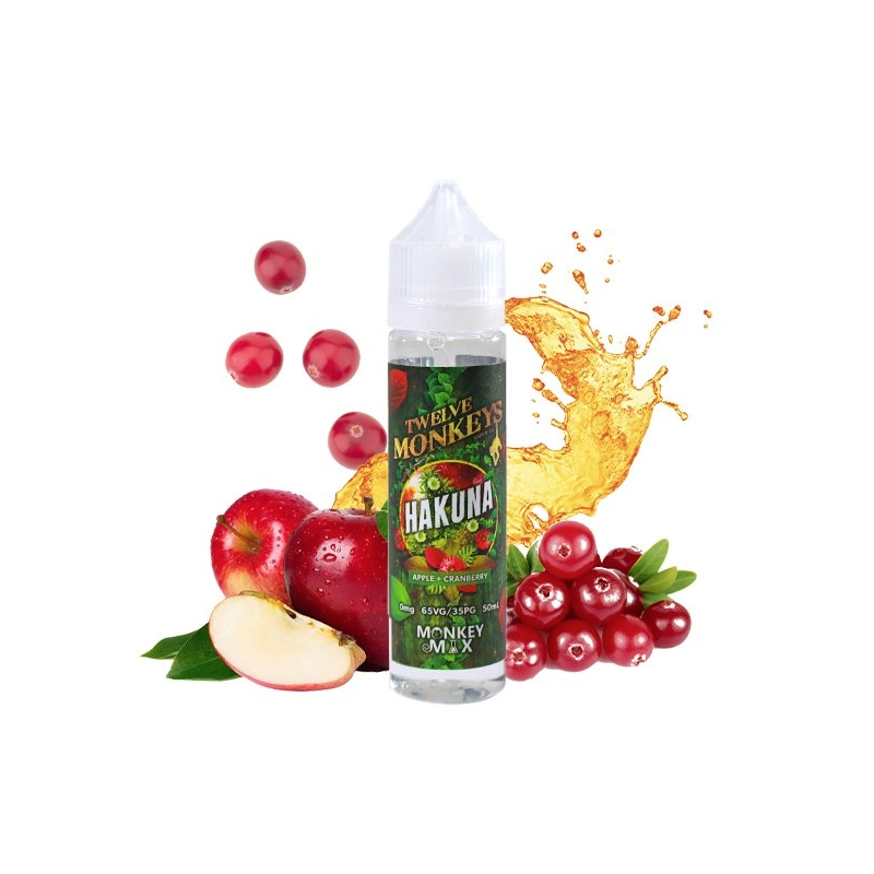 Le Hakuna, de la gamme Monkey Mix par Twelve Monkeys, possède une saveur depommes fuji et granny smith et de cranberry. La douceur de la pomme est relevée par l'acidité de la cranberry. Un jus envoûtant qui est accompagné d'une touche de fraîcheur pour encore plus de plaisir.