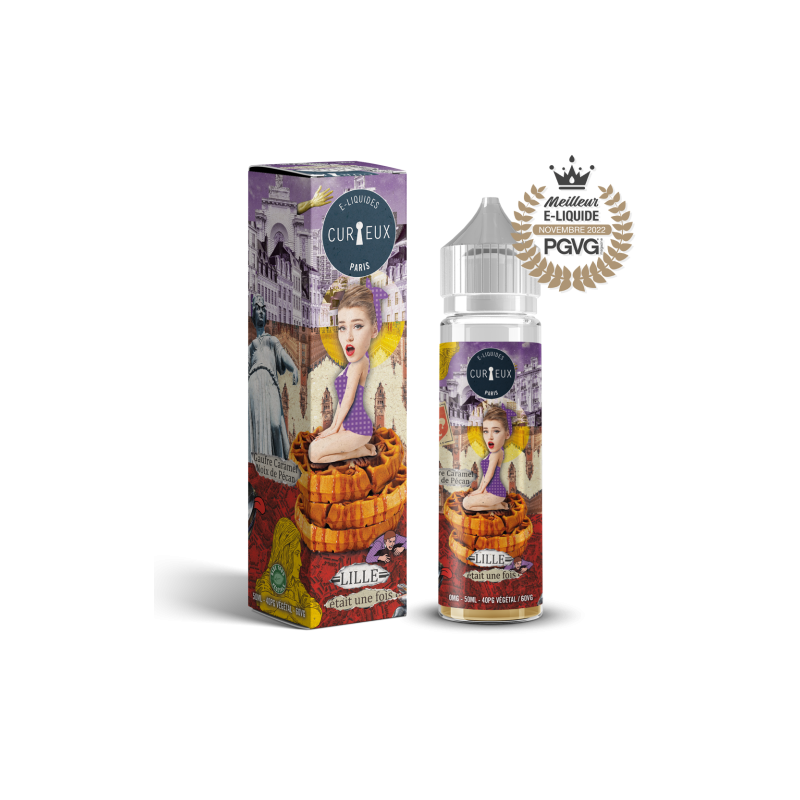 Le E-liquide Lille était une fois conçu par la marque Curieux est une délicieuse gaufre tout droit sorti de son appareil, nappée de caramel coulant et de noix de pecan pour le topping.